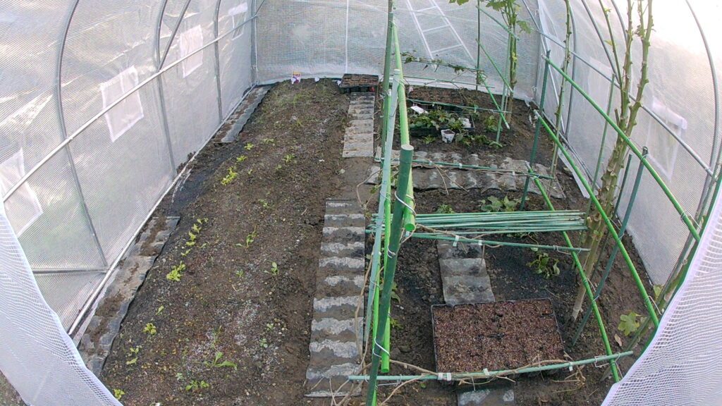 隙間のスペースでは、次期野菜の種まき発芽育成に利用します、